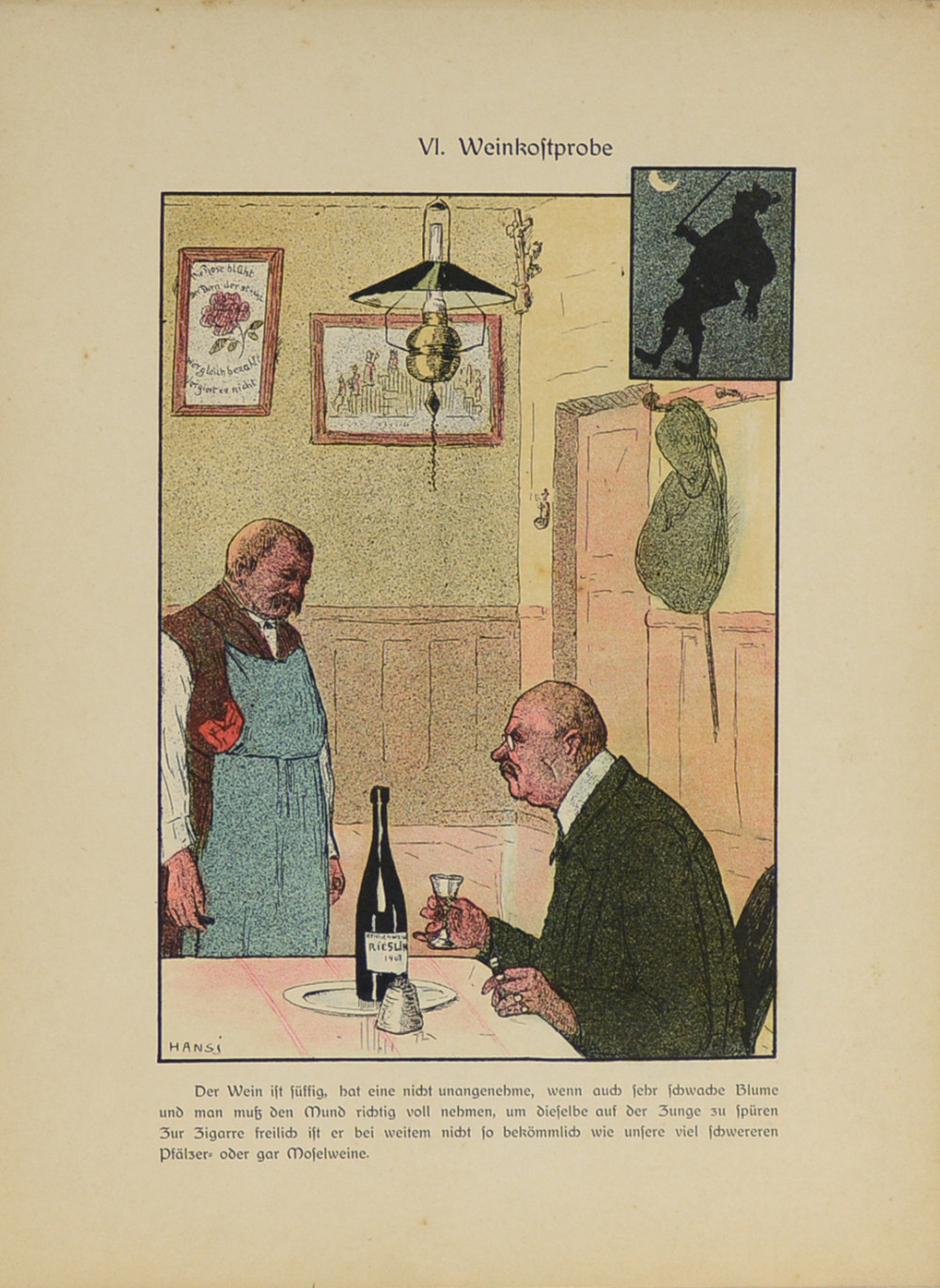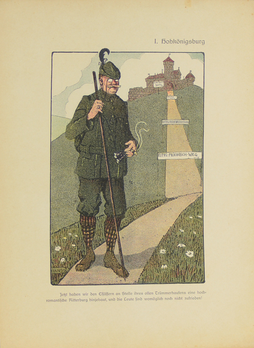 La chemise porte la mention de deuxième édition : une première édition, comportant les illustrations en noir, avait paru en 1907. Exemplaire complet des dix dessins en couleurs avec les légendes en allemand. Exemplaire correct malgré les défauts signalés. En l'état.