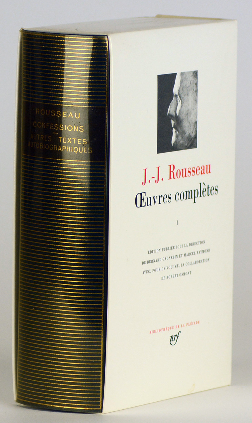Collection Bibliothèque de la Pléiade, n° 11, retirage de 2001. Contient : Les Confessions - Rousseau juge de Jean-Jacques, Dialogues - Les Rêveries du Promeneur solitaire - Fragments autobiographiques et documents biographiques. Bel exemplaire, comme neuf.