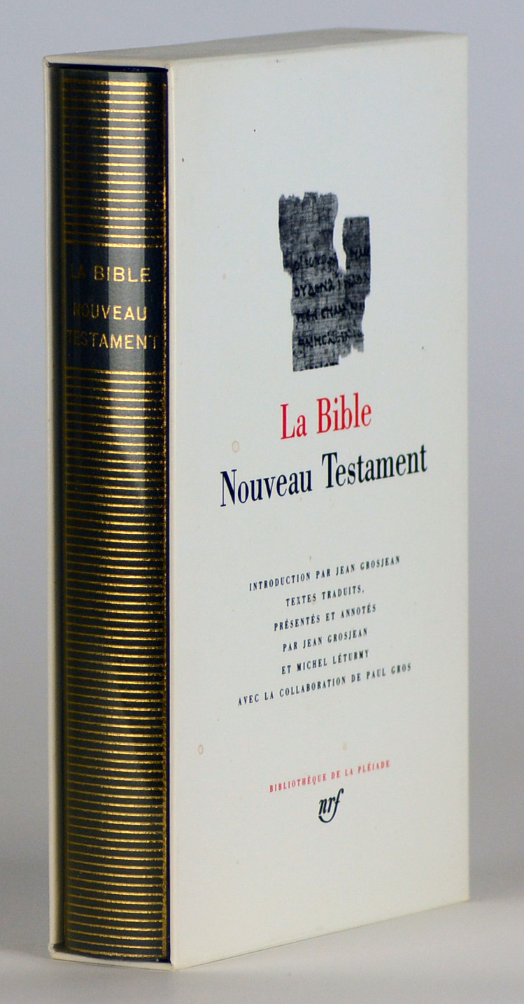 Collection Bibliothèque de la Pléiade, n° 226, retirage de 2002. «La publication des deux volumes de l'Ancien Testament dans la Pléiade, en 1956 et 1959, a été saluée comme un événement. Voici, longtemps attendu, le Nouveau Testament. La présente traduction s'est efforcée de répondre à une double fidélité : fidélité au texte dont elle suit d'aussi près que possible le vocabulaire ; fidélité aux auteurs dont elle essaie d'épouser le mouvement et le ton. Notre ambition a été de rendre à ces textes la nouveauté et la diversité qu'y trouvèrent leurs premiers lecteurs : quelque chose de leur force explosive.» Bulletin Gallimard, avril 1971. Bel exemplaire, comme neuf.