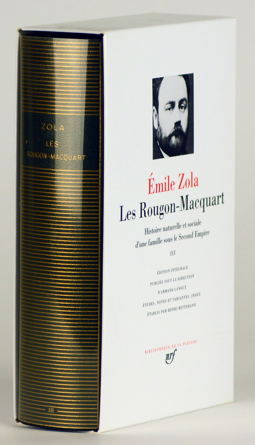 Collection Bibliothèque de la Pléiade, n° 173, retirage de 2012. Ce troisième volume des Rougon-Macquart comprend : Pot-Bouille, Au Bonheur des Dames, La Joie de vivre et Germinal. Le premier de ces quatre romans est une manière de comédie rosse, un âpre règlement de comptes de Zola avec la morale des bienséances, qu'on a cessé d'opposer depuis dix ans aux audaces de son œuvre antérieure. Au Bonheur des Dames décrit le monde fiévreux et bariolé des grands magasins qui ont surgi dans le Paris reconstruit à neuf du préfet Haussmann. La Joie de vivre, au titre ambigu, prend les teintes sombres de la souffrance. Ce roman de l'angoisse est l'œuvre la plus intime de Zola après La Confession de Claude. Depuis sa publication, en 1885, la critique n'a plus jamais cessé de placer Germinal au tout premier rang de la littérature universelle. Bel exemplaire, comme neuf.