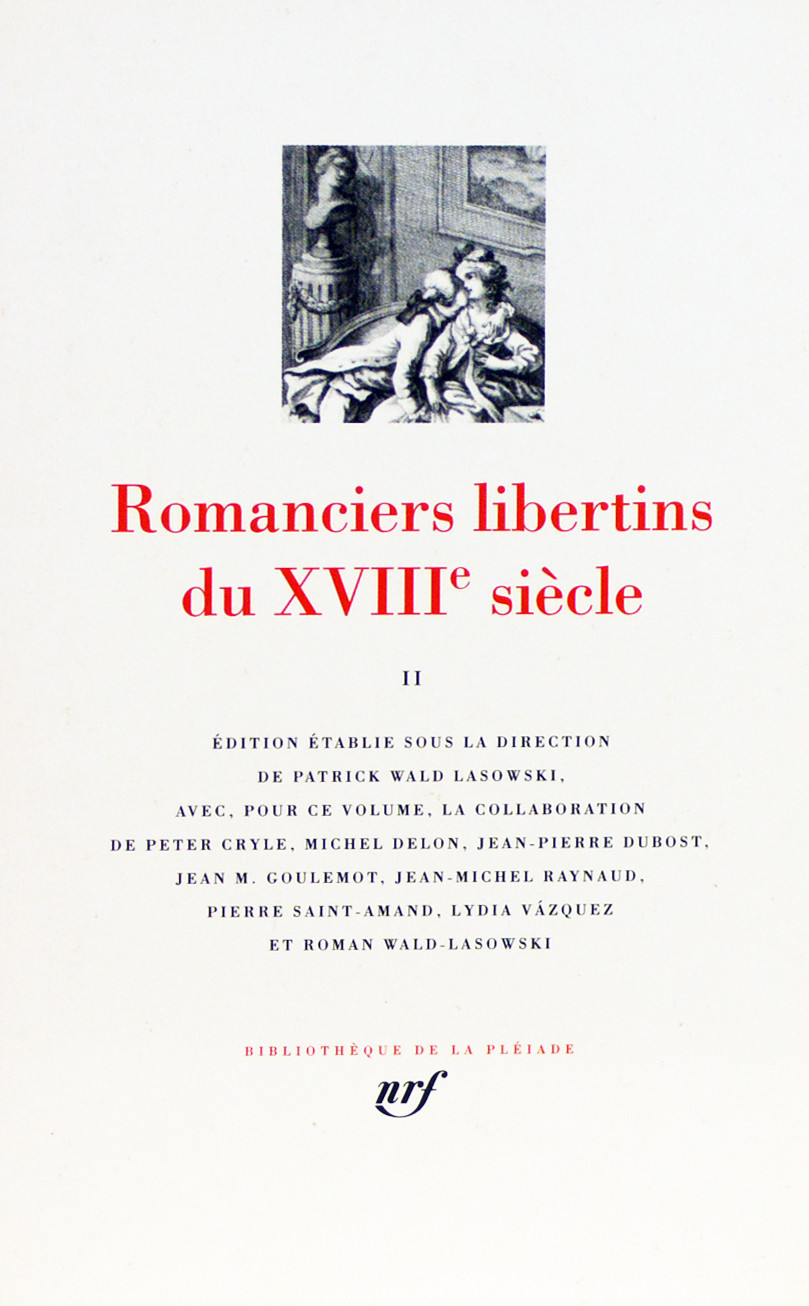 Collection Bibliothèque de la Pléiade, n° 520. Contient : La Popelinière et Claude de Crébillon : Tableaux des mœurs du temps - Boufflers : La reine de Golconde - Rétif de La Bretonne : Le pied de Fanchette - Dorat : Les malheurs de l'inconstance - Nerciat : Félicia ou Mes fredaines - Anonyme : Mémoires de Suzon, sœur de D. B…. - Le petit-fils d'Hercule - La Messaline française - Mirabeau : Ma conversion [Le Libertin de qualité] - Pidansat de Mairobert : Confession d'une jeune fille - Pigault-Lebrun : L'enfant du bordel. Bel exemplaire, comme neuf.