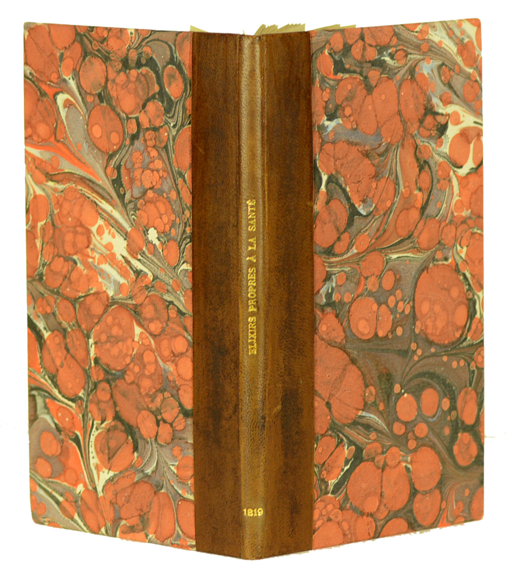 Rare catalogue de potions de guérison et d'antidotes pour la médecine humaine et vétérinaire, avec, en fin de volume, une table des remèdes (3 pp.) ainsi qu'une table des remèdes pour les chevaux (2 pp.). Les différents articles se trouvaient à Pontarlier, chez Barrier, et dans d'autres points de vente, à Ornans, Morteau, Mouthe, etc. Bon exemplaire malgré quelques rousseurs sur les premiers et derniers feuillets.