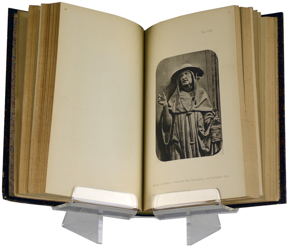 Édition originale du volume consacré au district de la Haute-Alsace, soit aux départements actuels du Haut-Rhin et du Territoire de Belfort. Les quatre volumes d’inventaire des monuments historiques d’Alsace-Lorraine (Kunst und Alterthum in Elsass-Lothringen, Strasbourg, I, 1876, II, 1884, III, 1889, IV, 1892) se rencontrent rarement complets . Nombreuses illustrations, en noir ou en couleurs, in et hors texte. Bel exemplaire, sans pièce de tomaison au dos mais avec la mention "Alsatica".
