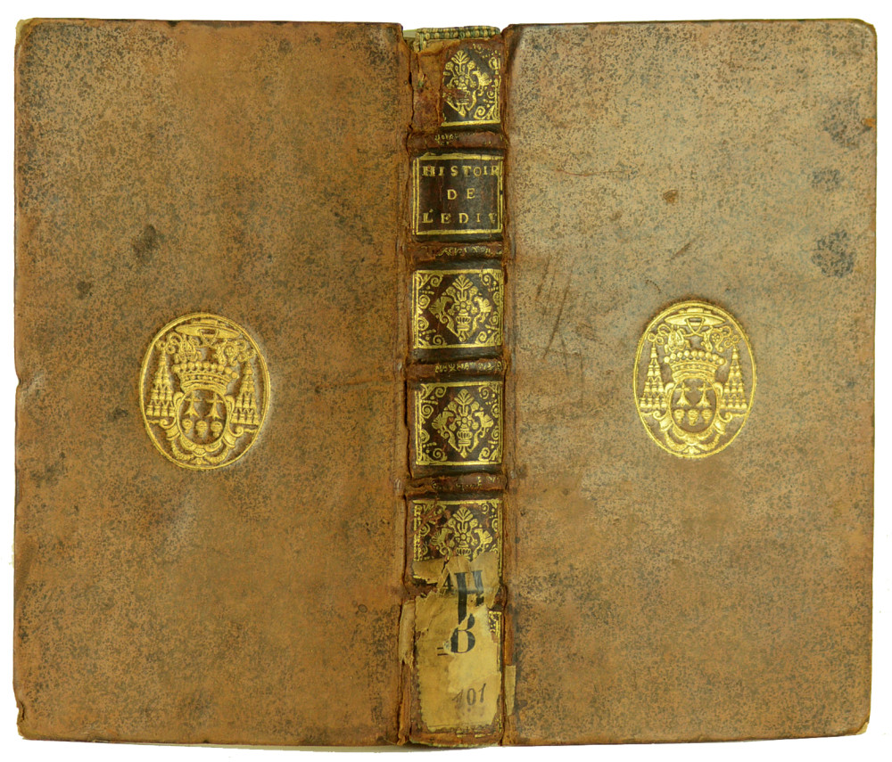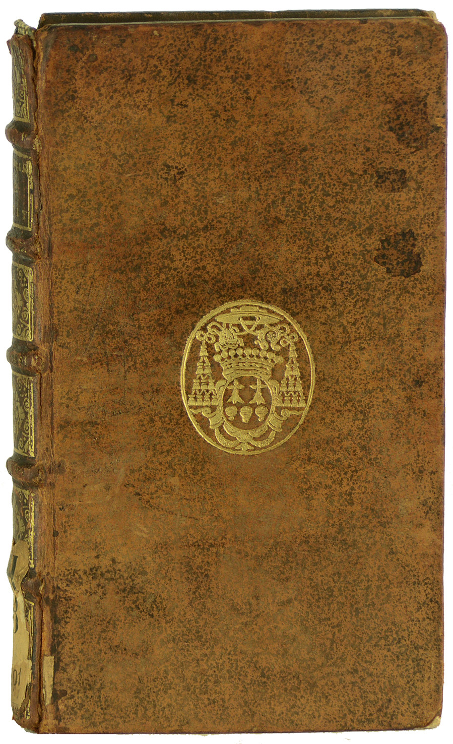 Paris, Chez Jean Anisson, 1698 ; in-12, 16 ff.n.ch. + 322 pp. + 5 ff.n.ch., plein veau de l'époque, dos orné à nerfs, armes d'un archvèque non identifié sur les plats, étiquette en pied (coiffe supérieure arrachée, mors fendillés, coins légèrement émoussés).