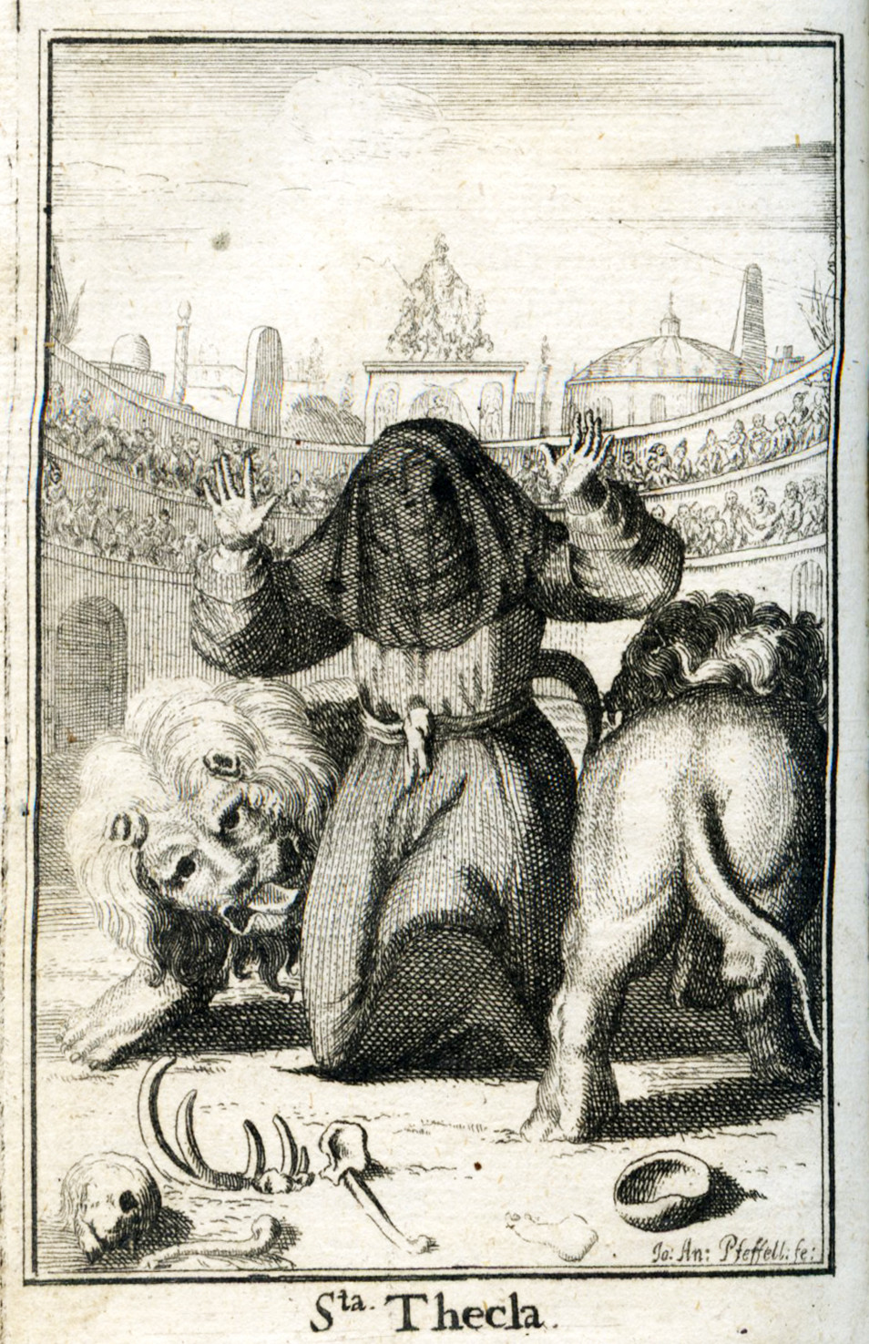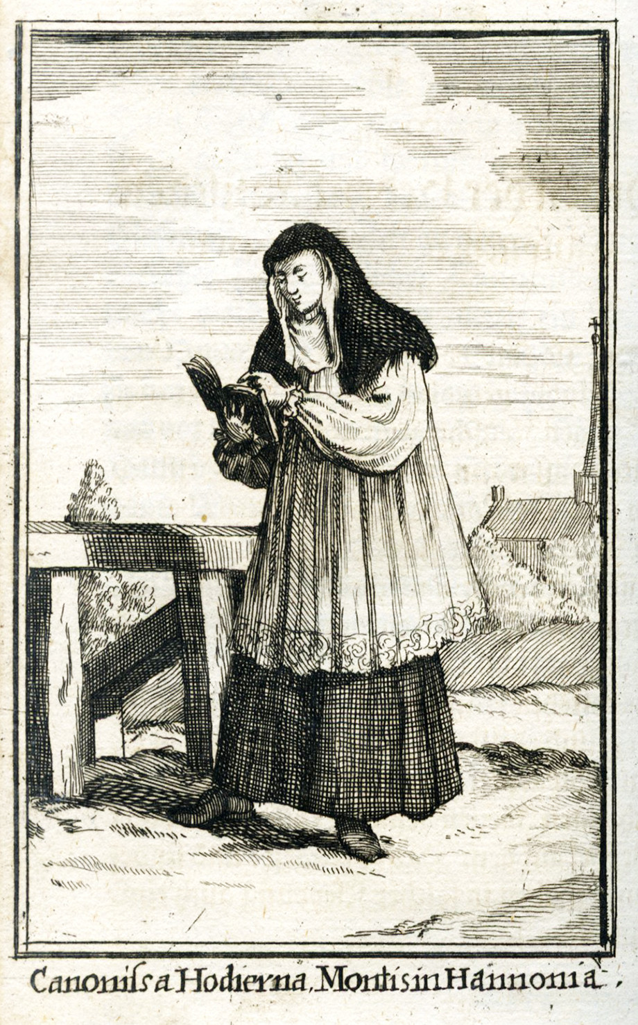 Premières éditions allemandes, illustrées pour le premier volume de 73 gravures en taille-douce, hors-texte, représentant les différents costumes des ordres religieux masculins et, pour le second titre, de 91 planches concernant cette fois les ordres féminins. Les gravures sont des copies des planches réalisées par Adriaan Schoonebeek pour l'édition originale flamande. Exemplaire correct malgré quelques rousseurs et les défauts de reliure signalés, complet. En l'état.