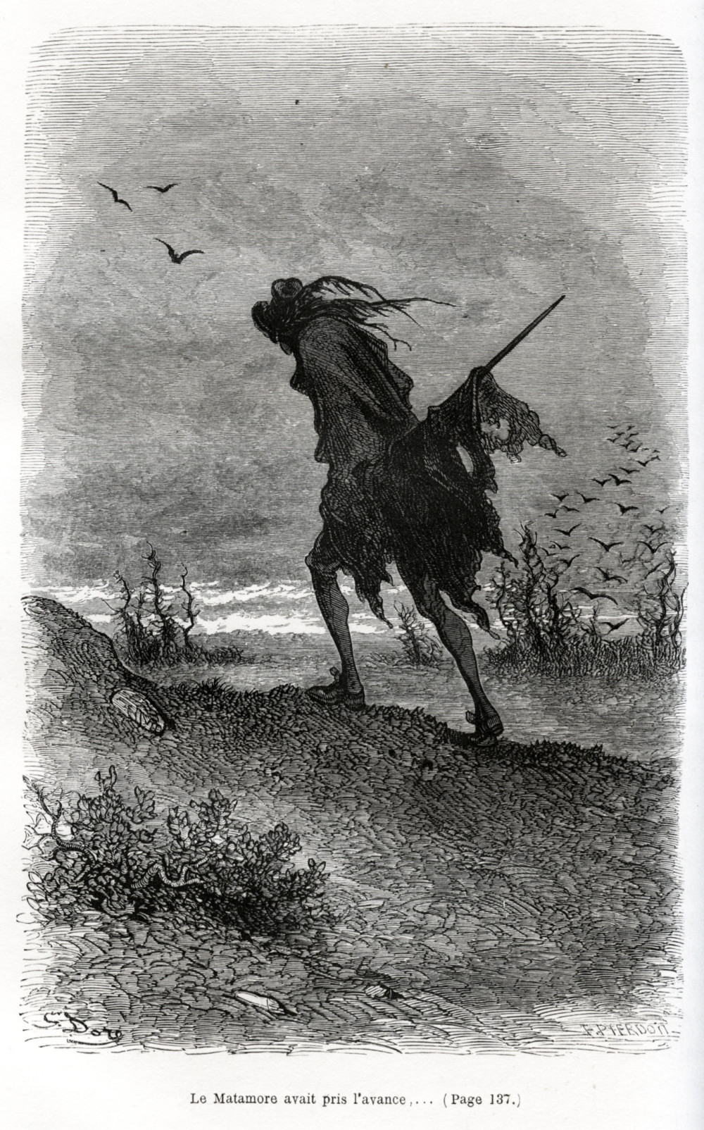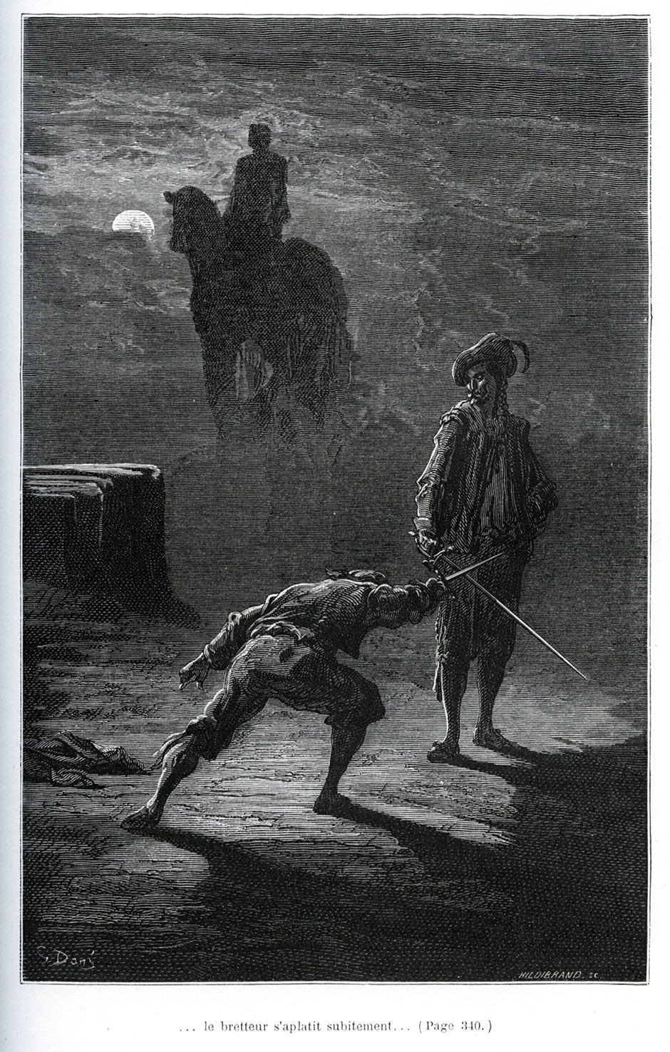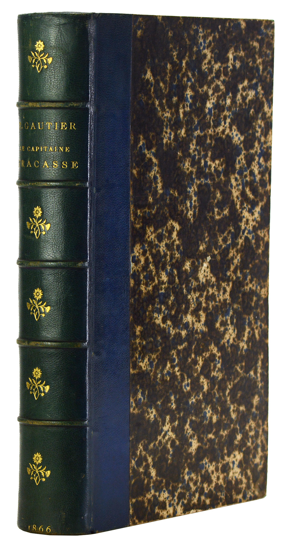 Carteret III, 260. Leblanc p. 118. Première édition illustrée, "très recherchée pour sa remarquable illustration" (Carteret), constituée, en premier tirage (à l'adresse du Quai de l'École), de 60 planches hors-texte de Gustave Doré, gravées sur bois. Le choix de Gustave Doré pour illustrer son Capitaine Fracasse, qui connut un important succès dès sa parution en 1863, revient à Théophile Gautier lui-même, qui avait noué des relations d'amitié avec le peintre et qui lui vouait une grande admiration. Maxime du Camp, autre proche de Gautier, annonça ainsi la collaboration des deux artistes dans le Journal des débats du 21 décembre 1866 : "Un livre de Théophile Gautier illustré par Gustave Doré, c’est une double bonne fortune qu’il faut se hâter de signaler à ceux qui aiment encore les belles œuvres de la plume et du crayon, car il est rare de trouver aussi étroitement mêlé le plaisir de l’esprit et le plaisir des yeux". "Promis depuis 1835, Le Capitaine Fracasse ne parut qu'en 1863. De l'avis unanime de ses intimes, c'est dans cette œuvre que Gautier prosateur a mis le meilleur de lui-même, et c'est pourtant son œuvre la plus méconnue, car elle n'est jugée que sur des apparences. Dans la mémoire du grand public, Le Capitaine Fracasse est un roman de cape et d'épée, bien mis en valeur dans les adaptations cinématographiques qui en ont été faites" (Dictionnaire des littératures de langue française, II, 953). Bel exemplaire, non rogné sauf en tête, dont le papier est resté d'une blancheur immaculée.