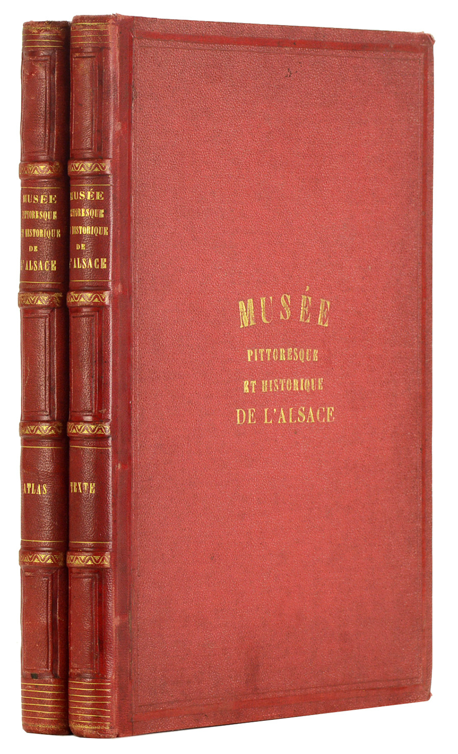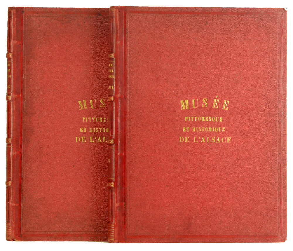 Colmar, J. Rothmuller, éditeur, 1863 ; 2 volumes grand in-4, 206 pp. (volume de texte) + 73 ff. (volume de planches), demi-chagrin rouge de l'époque, dos à quatre nerfs, coiffes ornées de filet et nerfs de roulettes dorés, caissons estampés à froid sur les entre-nerfs, plats de percaline rouge, plats supérieurs titrés (coins émoussés, traces d'usage). Les 2 volumes.