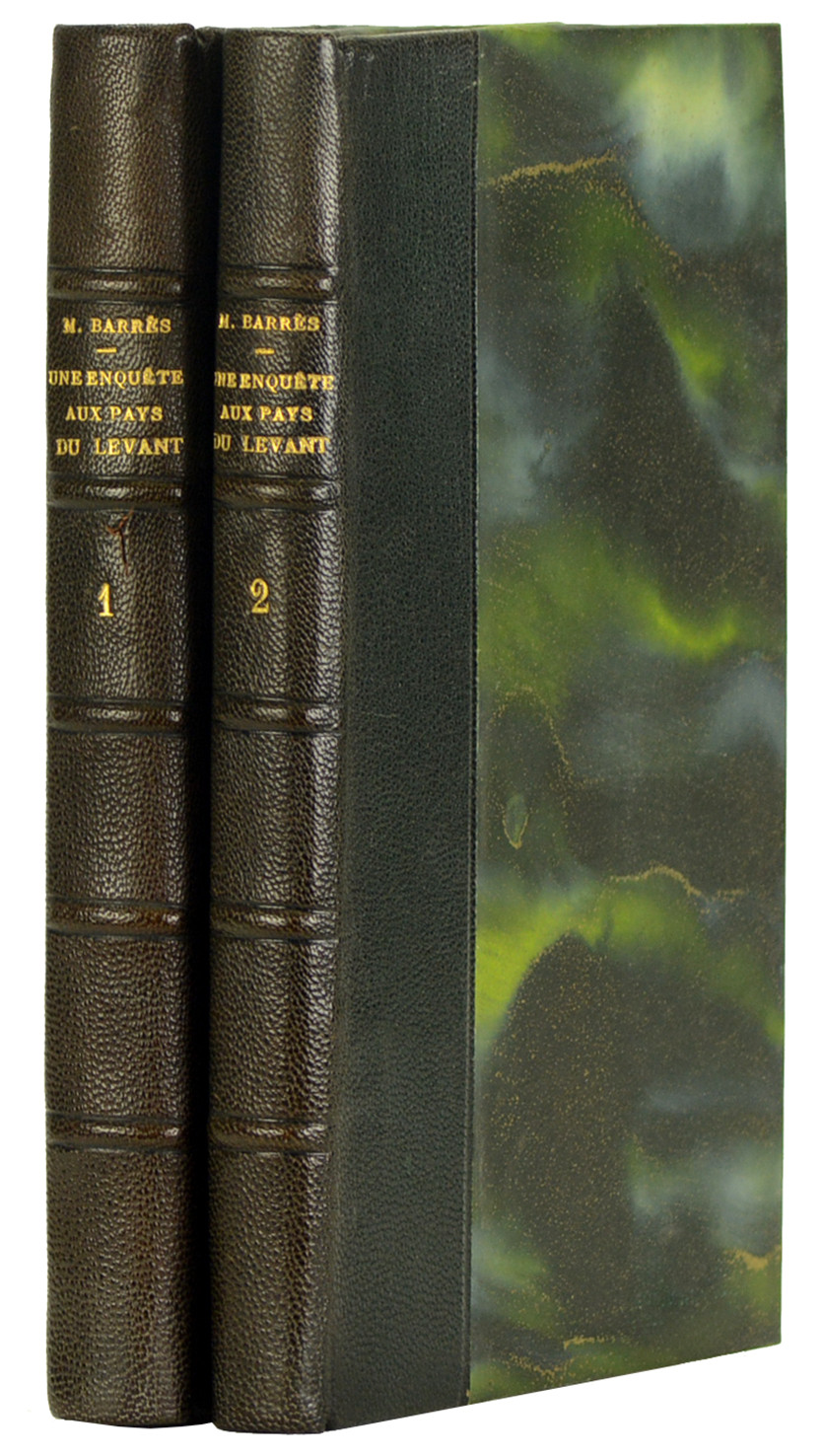 Édition originale tirée sur papier de fil. Cette "enquête" relate le périple de Barrès en Orient, notamment en Syrie et au Liban, alors sous mandat français après la Première Guerre mondiale. Il y mêle observations géopolitiques, réflexions sur l’identité française, et une fascination pour les traces historiques et religieuses de la région, notamment chrétiennes. Bon exemplaire.