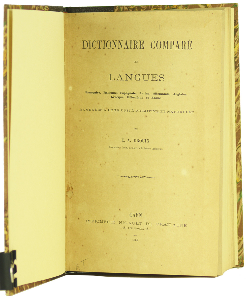 Édition originale de cet important dictionnaire linguistique qui réunit en une comparaison détaillée neuf langues, offrant ainsi une explication lexicale et étymologique de chaque mot. Page de titre et dernière page jaunies, mais bon exemplaire.