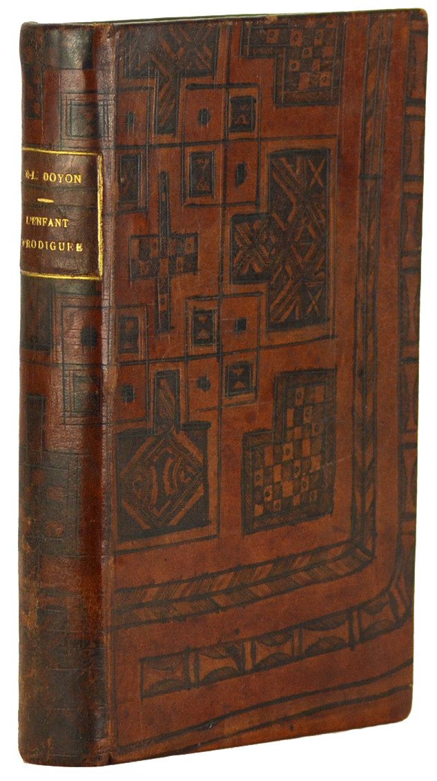 Paris, "La Connaissance", 1927 ; in-12, 241 pp., basane fauve, dos lisse et plats ornés de décors africanisants dessinés à la plume et dont les contours ont été "marqués" de filets à froid, tête dorée, couvertures et dos conservés.