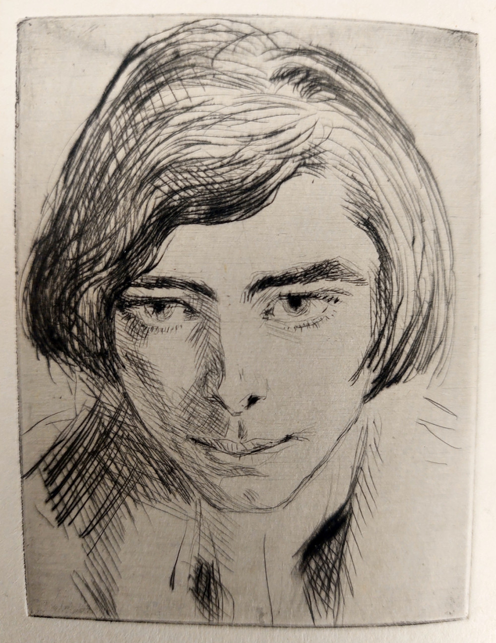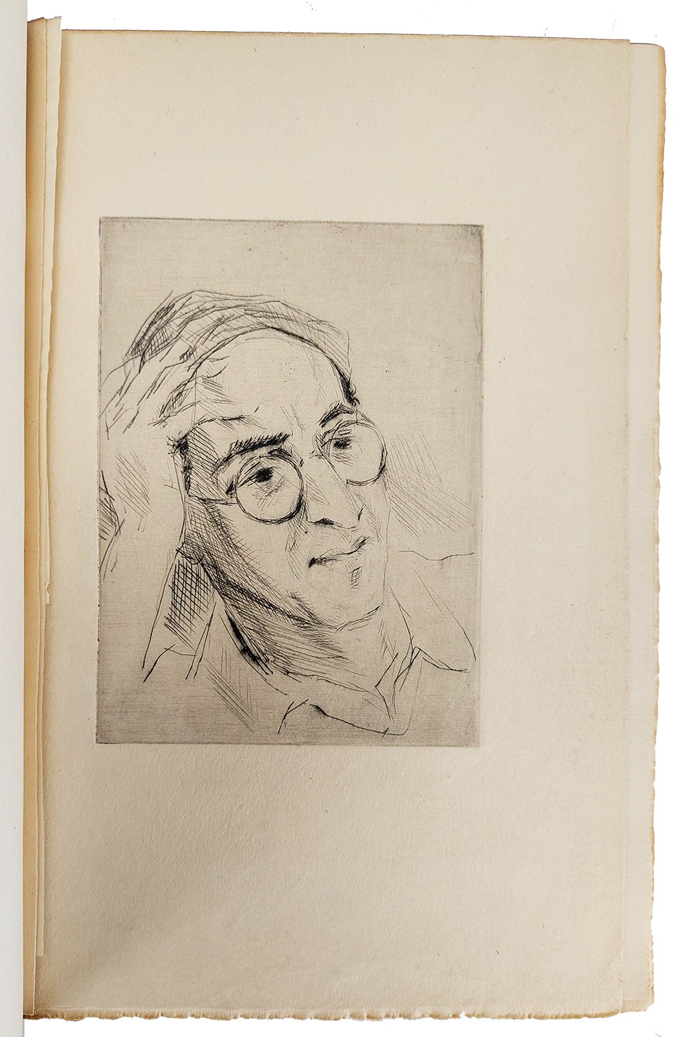 Talvart & Place 12A. Édition originale dont le tirage a été limité à 140 exemplaires (dont 40 hors commerce), ici exemplaire de passe, non numéroté, imprimé sur Rives à la cuve. Roman présenté sous la forme d’un journal intime retrouvé par René-Louis Doyon, L’Enfant prodiguée met en scène une relation entre un narrateur et une femme désignée par ce surnom. Bel exemplaire, avec le portrait de l'héroïne gravé à la pointe-sèche par Raphaël Drouart, et un portrait gravé [par le même ?] de Doyon ajouté avant la page de faux-titre. Intéressante reliure de l'époque, non signée mais de bonne facture.