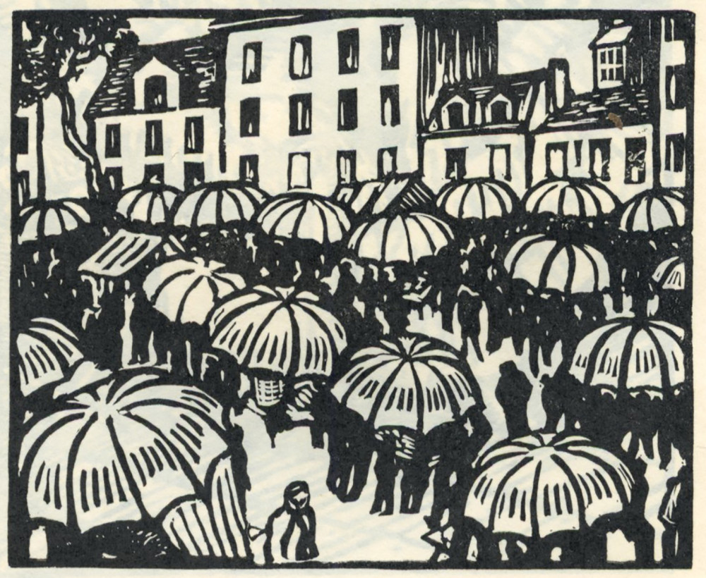 Un des 643 exemplaires numérotés sur Hollande van Gelder, comprenant une suite des bois titrée sur japon. Bon exemplaire.
