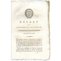 Décret de l'Assemblée nationale, concernant les colonies. Du lundi 8 mars 1790.