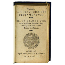 Novum D. N. Iesv Christi Testamentum. Cuius Graeco contextui respondent Versiones duae, altera Gallica, altera Latina, T...